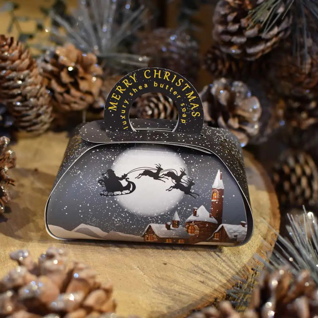 Experience luxury self-care with this Christmas Winter Village Gift Soap. Generously fragranced and expertly crafted from pure vegetable oils and enriched with shea butter, this vegan-friendly soap produces a rich, silky lather that scents and nourishes your skin. Presented in fully recyclable packaging with no plastic waste and adorned with charming illustrations, our eco-friendly soaps are the perfect gift or indulgent treat for yourself.