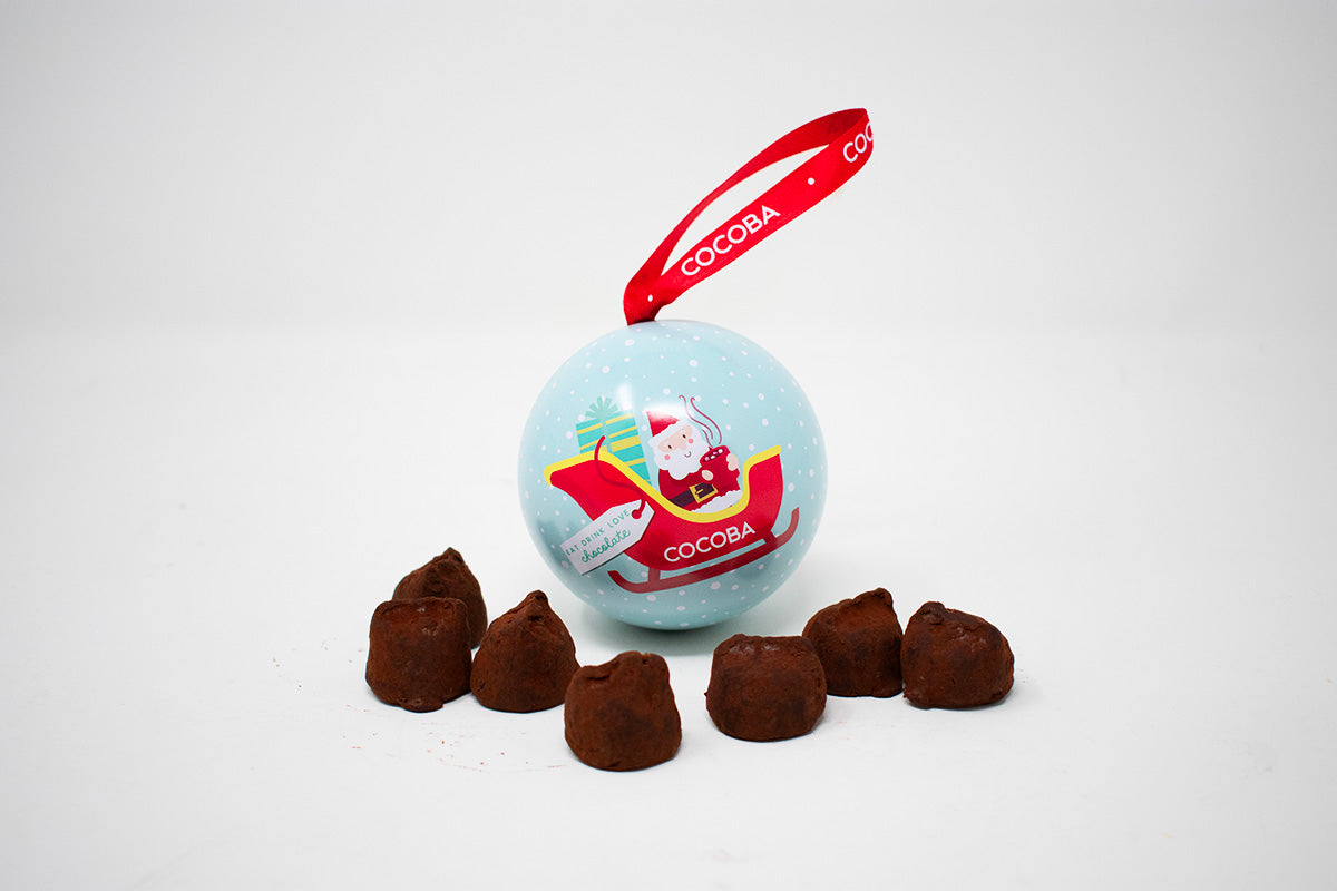 Inside you’ll discover Cocoba’s most indulgent treat, rich, indulgent salted toffee chocolate truffles. They’re the perfect little surprise hidden within the decoration.