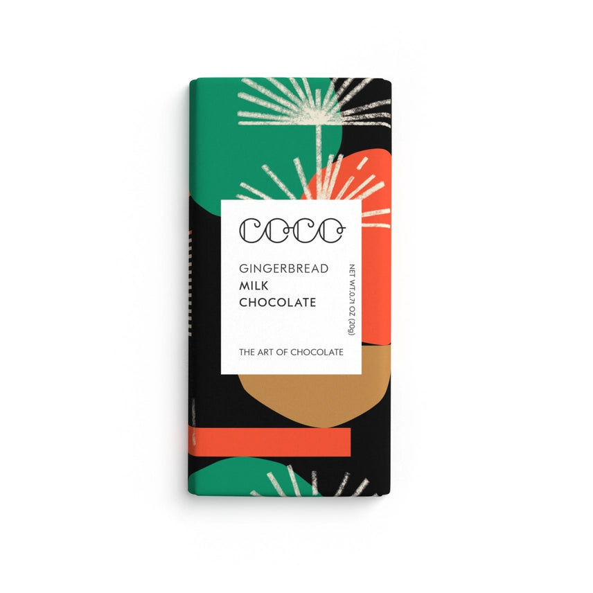 The ode to warm flavour. Milk chocolate bar made with the finest cocoa beans from Colombia spiced with speculoos biscuit and ground ginger. Cocoa Origin: Colombia Weight: 20g Artist: Hola Lou Ingredients: Sugar, Cocoa Butter, Cocoa Mass, Milk Powder (14.5%), Speculoos Biscuit (Wheat Flour, Candy Sugar, Vegetable Oils (Palm, Canola, Coconut), Raw Cane Sugar, Soya Flour, Invert Sugar Syrup, Raising Agent: Sodium Hydrogen Carbonate, Cinnamon, Nutmeg), Ground Ginger, Emulsifier: Non-Gmo Soya Lecithin, Natural Vanilla Flavour. Attributes: Vegetarian, No Gluten containing ingredients, Free from artificial colours and flavours. Allergens: Contains soya, milk. May contain traces of peanuts, nuts and gluten.