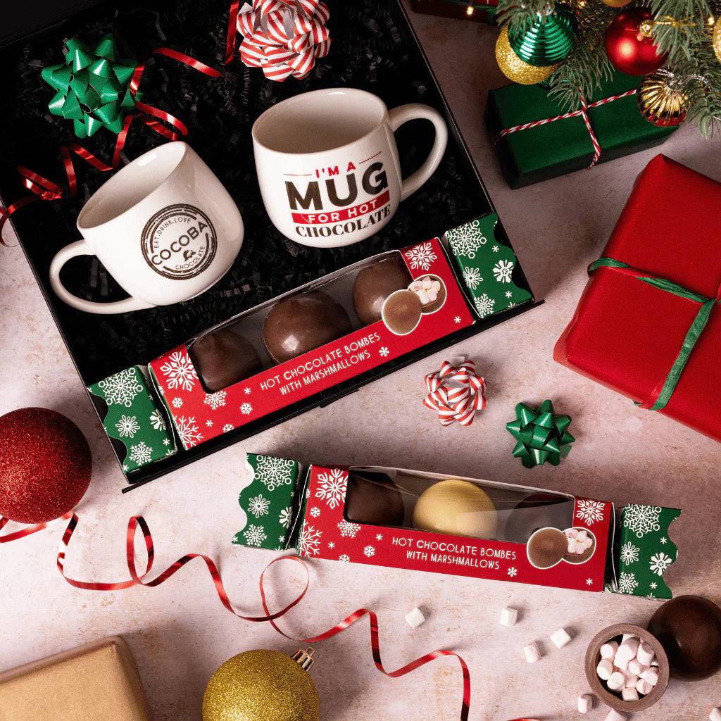 Add a different kind of Christmas Cracker to your festive table this season with our Hot Chocolate Bombe Cracker. No bad jokes or plastic toys - just delicious hot chocolate! Each Christmas cracker contains three hot chocolate bombes with mini-marshmallows hidden inside. Choose between milk chocolate, white chocolate and dark chocolate.